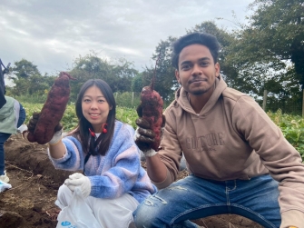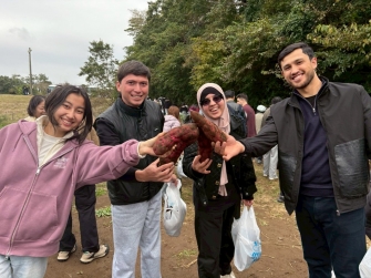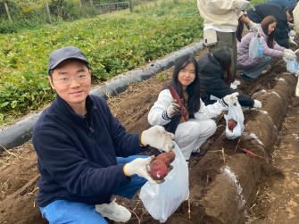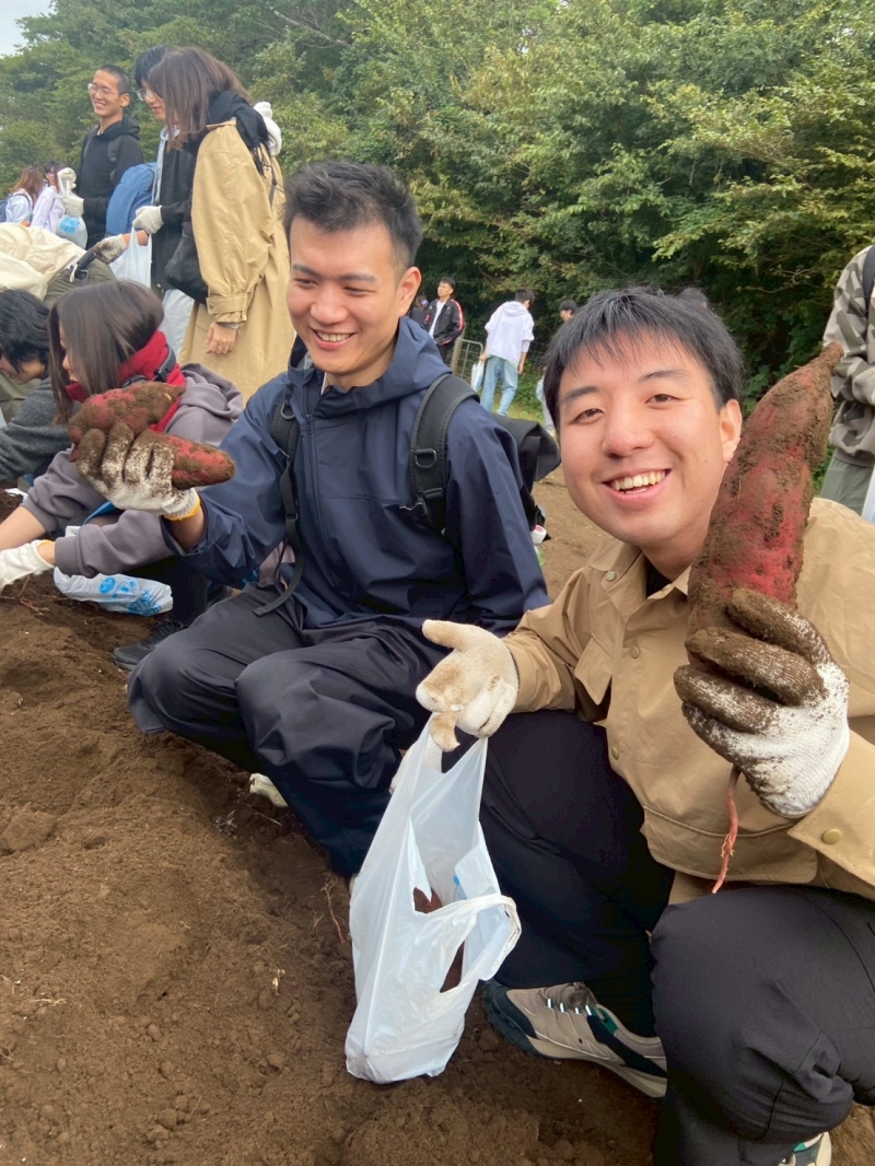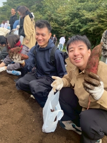 大きいいサツマイモを掘ったあとは、みんなでBBQをしましたよ。よく食べて、よく笑います。